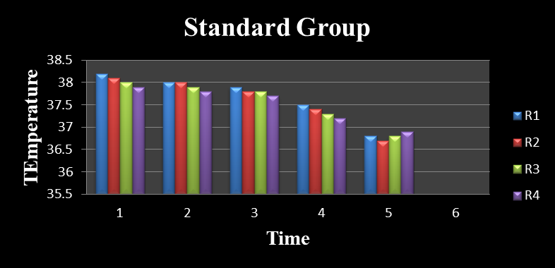 The differences between the actual value and the starting values were registered for each time intervals. The maximum reduction of temperature to the test group is calculated. The results were compared with the effect of standard drug