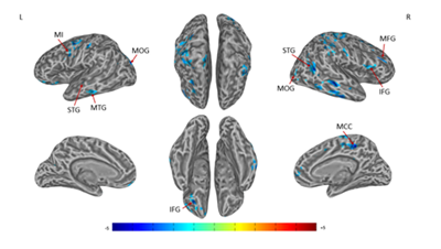 MI, precentral gyrus; MOG, middle occipital gyrus; MFG, middle frontal gyrus; IFG, inferior frontal gyrus; MTG, middle temporal gyrus; STG, superior temporal gyrus; MCC, middle cingulate cortex