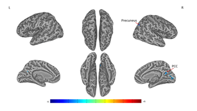 P ≤ 0.01, α ≤ 0.02, corrected by the Monte Carlo method. PCC, posterior cingulate cortex