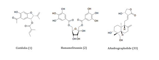 To date, many herbal medicines in Europe are being sold with quality assurance directed with known active principle(s) for a well-defined pharmacology related to the claimed medicinal uses. Accordingly, researches in our laboratories in the last three decades have also been directed in the characterisations of hundreds of medicinal plants collected from almost all corners of the world. One classical example from the European medicinal plants was that of gravel root (Eupatorium purpureum)which is extensively used to treat chronic inflammatory diseases including rheumatoid arthritis. By using in vitro and in vivo models of anti-inflammatory assays, the active principle has been isolated and characterised as a benzofuranderivative,1 (Figure 1).1-3Through similar approaches, the anti-haemorrhagic use of Hamamelis virginiana.4 and anti-inflammatory effect ofAndrographis paniculata.5, (Figure 1) were among the countless examples where we have provided scientific evidences to substantiate traditional medicinal claims (see our extensive publications at http://www.herbalanalysis.co.uk/publications-new.html ). The merit of science as a pillar for making such medicines fit for the current purpose must therefore be favourably viewed by all stakeholders: the consumers, the pharmaceutical/herbal industry and the scientific community.