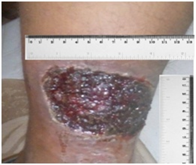 Each patient presented history of the ulcer, treatment, and other significant medical conditions were reported. All patients had been previously treated by their referring physicians by means of elastic bandage compression stocking with wound antiseptic lavage and local application of traditional dressing such as hydrogel and hydrocolloid dressing. However, none of these methods resulted in complete healing of the wound. Each ulcer was classified according to wound morphology, severity, and location. A systematic description of wound and limb appearance was recorded, including edema, erythema, exudation, granulation, and presence of fibrin or eschar.