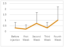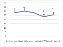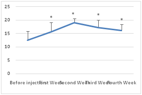 Total serum globulins (Figure 4) increased significantly by the 1st and the 4th week respectively post intravenous infusion, while and ascorbic acid (Figure 5) increased but not significantly. Daily ingestion of 20% solution from floral-undetected Nigerian honey65 or intraperitoneal of 10% Egyptian66 fennel honey solution increased serum globulin and ascorbic acid levels,65 while daily ingestion of acasia Pakistanish honey up to 50% did not alter the serum globulin level.67 Vitamin C raises intracellular glutathione levels and playing an important role in protein thiol group protection against oxidation, so honey vitamin C content will magnify its antioxidant effect as the profound antioxidant efficacy might be due to the synergistic action of the polyphenols such as flavonoids, and other compounds such as vitamin C.68