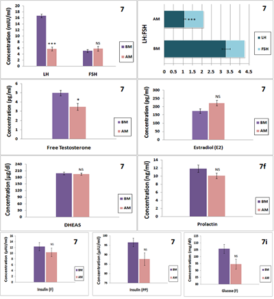 µg, microgram; AM, after medicine; BM, before medicine; DHEAS, dehydroepiandrosterone sulphate; dl, decilitre; E2, estradiol; F, fasting; FSH, follicle stimulating hormone; IU, international unit; LH, leutinizing hormones; mg, milligram; ml, millilitre; ng, nanogram; pg, picogram; PP, post prandial;