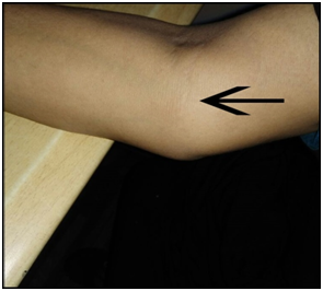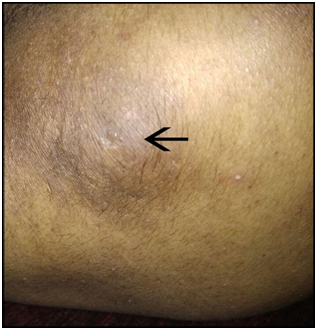 The patient has been taking NSAID’s, corticosteroids, anti-hypertensives, calcium supplementation and laxatives regularly. She has been getting mild relief with the above medicines but she is not satisfied with that relief. Patient was non smoker, non alcoholic and doesn’t have positive family history of any autoimmune disease. Patient has not been taking any medication for allergy on regular basis. Patient has opted for Ayurvedic treatment and came to our care in search of better and sustained relief. At the time of examination, swelling (without erythema) and deformities were noted at interphalangeal joints of both hands (Lt>Rt) and at wrists (Figure 1). Swelling associated with tenderness is noticed at both elbow joints (Figures 2 & 3), ankle joints and knee joints. Patient had mild fever and restricted movements at the above said joints of the body at the time of examination. Dryness of conjunctiva and oral cavity found. Skin was also dry and nodular, inflammatory, localized, well circumscribed, tender skin lesions were found on both buttocks (Figure 4). Patient had difficulty in breathing and non-productive cough was observed. Patient had problems in swallowing of hard foods and she required frequent sips of water to swallow such type of foods. Dryness of skin, conjunctiva and mouth aggravates especially after sunset, during winters and cloudy weathers. While conversation it was noticed that, patient had pessimistic thoughts and depressed mood. Blood pressure was normal (120/80mm of Hg) (patient has been taking anti hypertensive medication). There was no parotid gland swelling. Bilateral axillary lymph node enlargement has been found on palpation.