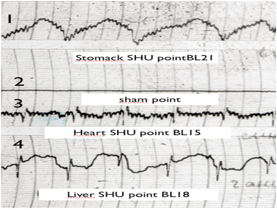 In our small–scale preclinical tests, we demonstrated that it is possible to record the electromagnetic activity of the SHU acupuncture points, similar to the way current medical science records heart and brain activity using the EKG and EEG. Electromagnetic activity was detected and recorded exclusively in SHU acupuncture points, and not in inactive neighboring tissues. The recordings were different for different SHU points. Moreover, the shapes of waves recorded at SHU points corresponding to healthy internal organs were different from the waves recorded when a pathological condition was present in a corresponding internal organ.