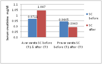 The statistical analysis was done by using SPSS 16.0 software. The comparison between avar satva sarata and pravar satva sara femalein the form of quantitative data of different variables before first chemotherapy and after third chemotherapy was analysed by pair t test of parametric distribution (Figures 1-7), (Table1).