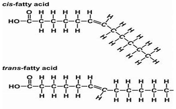 The differences in the structure of Cis and Trans fatty acids is shown below (Figure 3):