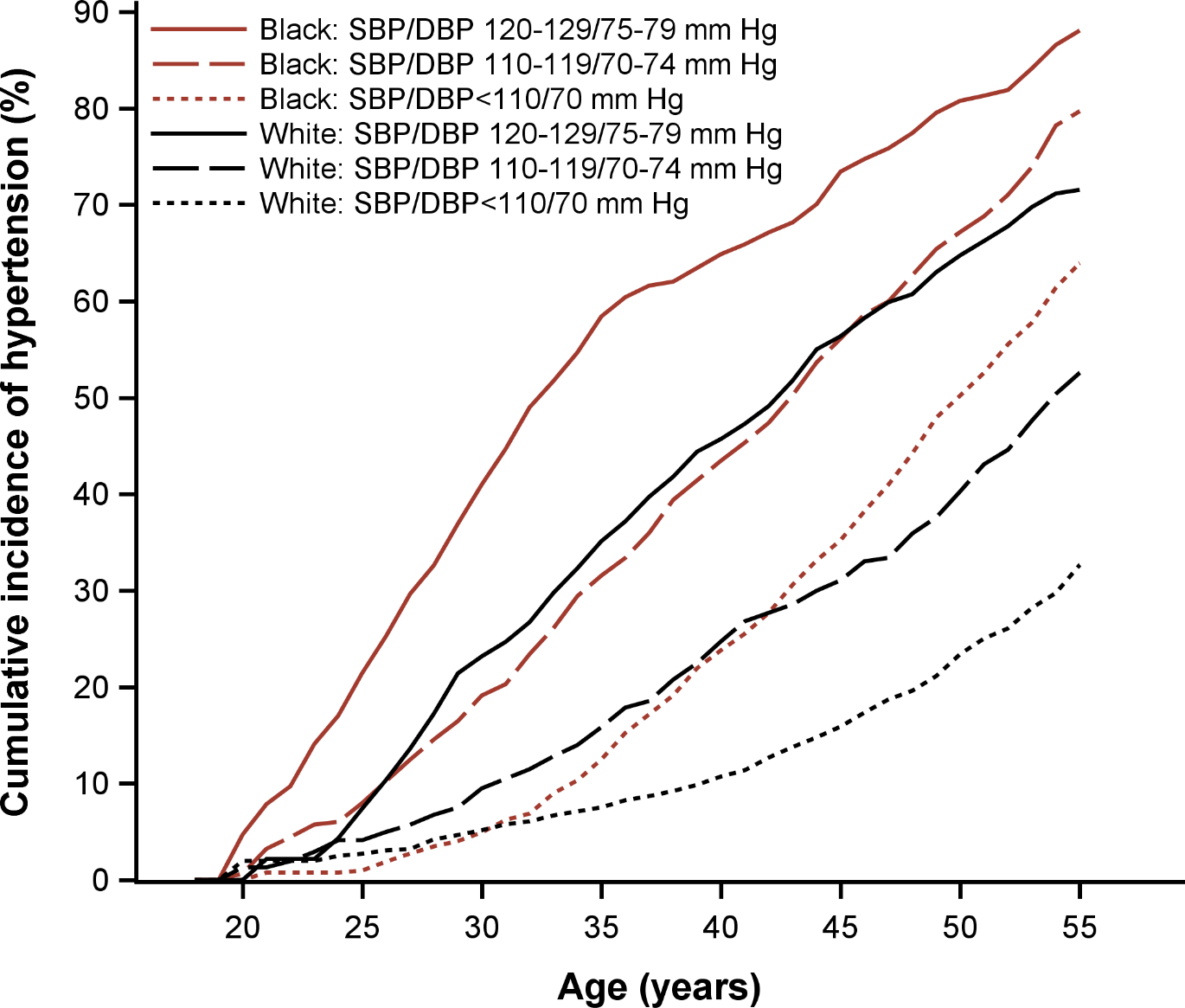 Figure 10 Age of onset of hypertension among African Americans and White Americans. From: https://www.ahajournals.org/cms/asset/416a203e-17f7-4ce4-8461-18bd1f8cc978/jah33322-fig-0002.png.