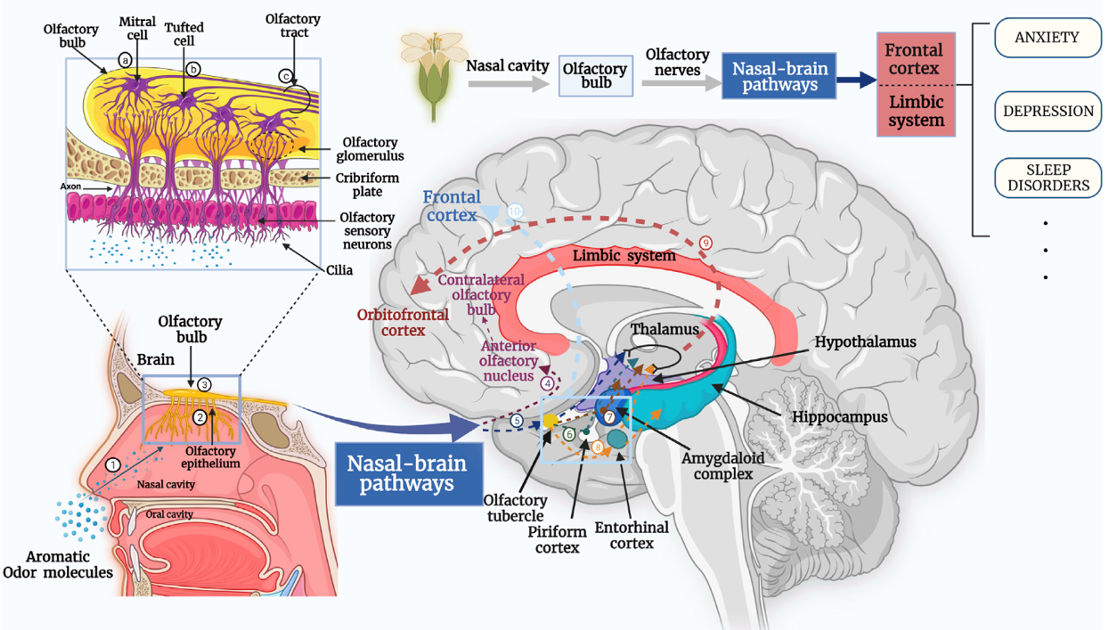 Figure 2 Inhalation Aromatherapy via brain-target nasal delivery for mood disorders.