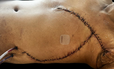 Large chest wall defects develop secondary to tumor resection, radiotherapy, trauma, and infection.1 Reconstructive breast surgery describes techniques that combine the principles of surgical oncology with those of plastic surgery in an attempt to achieve a desirable esthetic result while maintaining low cancer recurrence rate.2 Primary goals of chest wall restoration include protecting underlying thoracic structures and preserving respiratory functionality while achieving aesthetic outcomes.3 Fasciocutaneous flaps have been historically documented as a viable option for breast reconstruction Figure 2.