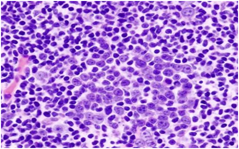 All these abnormal laboratory parameters were not present in all the previous routine visits of the patient at our ambulatory service. Immunofluorescence techniques revealed a recent antinuclear antibody (ANA) present at a high titer with a homogeneous pattern, followed by a low positive antibody titter to double-stranded DNA. To note, both these immunological findings has not been present before. Regarding the complement levels in the serum, there was a C3 of 141 mg/dL and C4 of 38.3 mg/dL accompanied by a low titer of IgG and IgM (618 and 14.10 respectively) and a negative test for ENA (extractable nuclear antigen). Serologic tests for Salmonella Typhi O and H, brucellosis, hepatitis B+C virus, cytomegalovirus and HIV1+2 were negative. Despite the immunosuppressive therapy applied since the patient was admitted to the hospital, her overall health condition did not improve. The laboratory parameters started to get more altered, now including even creatinine (up to 3.4 mg/dL) and uremia (up to 161 mg/dL) levels as well as total and direct bilirubin level. Hypoalbuminemia occurred as well. Meanwhile, in her 24 h urine collection, there was evidence of proteinuria (0.86 g/L), cellular casts. Three day after the patient was hospitalized; axillary’s and inguinal bilateral lymphadenopathy appeared rapidly increasing in their size. The lymph nodules had a diameter approximately from 4-5 cm with no tenderness in palpation. In computed tomography (CT) of chest and abdomen, additional mediastinal, supraclavicular and para-aortal lymphadenopathy were clearly noted. Bone-marrow biopsy showed pancytopenia but couldn’t give more detailed information regarding the disease. In these conditions, consulting even a hematology and infectious-disease specialists it was performed a biopsy of the axillaries lympho nodes. After hematoxylin and eosin stain the histopathological data showed high grade diffuse large B-cell (CD20+, Ki-67+, Bcl-2+, CKAE1/AE3 -) non-Hodgkin's lymphoma (NHL) with a starry sky pattern as showed in Figure 1. The patient was diagnosed as stage IV diffuse large B-cell lymphoma (DLBCL) concomitant to DLE that has recently progressed in active SLE (SLEDAI 2K = 6). The general health condition of the patient were not stable despite the therapy applied thus it was not possible to start the chemotherapy. Seven days after, the patient deceased.