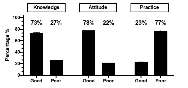 The KAP of HT levels for the patients in this study are indicated in Figure 1. The patients showed good HT knowledge as 73% (n=299) of the patients provided correct responses to the HT knowledge questions (Figure 1).