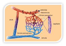 Figure 1 The Micro-circulatory unit consists of: arteriole, capillary venula, AVA, lymphatic capillary, nerve termination and connective matrix.