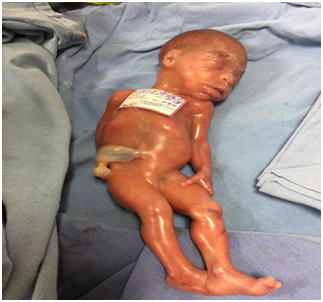 In the partial mole, fetuses are small for gestational agea disharmonious growth, which may present defects of the central nervous system defects neural tube (encephalocele, spina bifida), holoprosencephaly, agenesis of bulbs and tracts olfactory (arrienencefalia), hypoplasia of the cerebellum, agenesis of the corpus callosum, facial abnormalities such as microphthalmia, micrognathia, flattened nasal bridge, cleft lip and palate, low-set of auruiculares pavilions, short neck; in male fetuses can be seen hypospadias, cryptorchidism and micropene; They have also been described as internal alterations intestinal atresia, diaphragmatic hernia or inguinal, bile abnormalities, congenital heart disease and polycystic kidney disease.5 The presence of partial mole with live fetus is unusual for the variety of clinical complications maternal-fetal that can arise, among others associated with trophoblast proliferation such as the development of early preeclampsia, hemorrhage of the first quarter and maternal hyperthyroidism etc.5,6 The finding of hypertensive disorder associated with early pregnancy development can lead to suspicion of hydatidiform mole.7,8