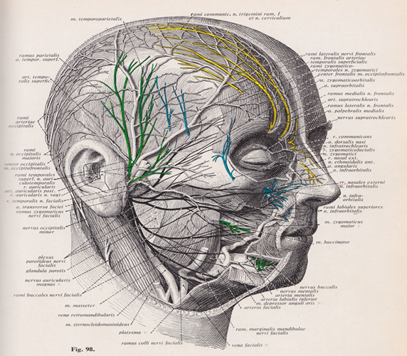 Having a broad knowledge of anatomy is essential for practicing neurology. Certain anatomical structures call for detailed studies due to their anatomical and functional importance. Nevertheless, some structures are difficult to visualize and identify due to their small volume and complicated access. Such is the case of the parasympathetic ganglia located in the cranial, facial part of the autonomic nervous system, which includes: the ciliary ganglion (located deeply in the orbit, laterally to the optic nerve), the pterygopalatine ganglion (located in the pterygopalatine fossa), the submandibular ganglion (located laterally to the Hypoglossus muscle, below the lingual nerve) and the Otic ganglion (located medially to the mandibular nerve, right beneath the oval foramen).9