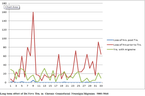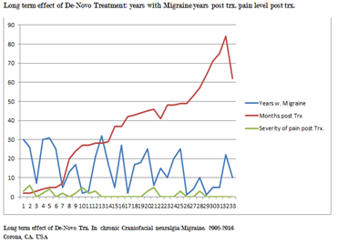 Figure 4 Long term effect of De-Novo treatment years with Migraine, vs. years' post-treatment, pain level post-treatment.