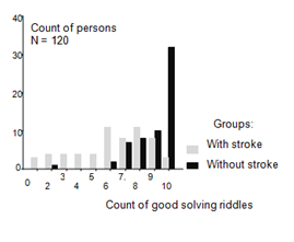 Table 2 Numbers of good solving of riddles at persons with and without stroke