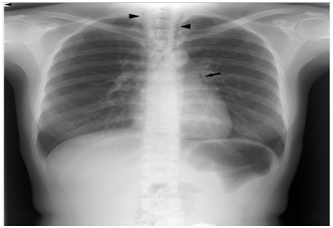 Keywords: spontaneous pneumomediastinum, diagnosis, mediastinum, pleural space, esophagogram, superior mediastinum, clinical entity, eating lunch, chest radiography, abnormal chest, aerodermectasia