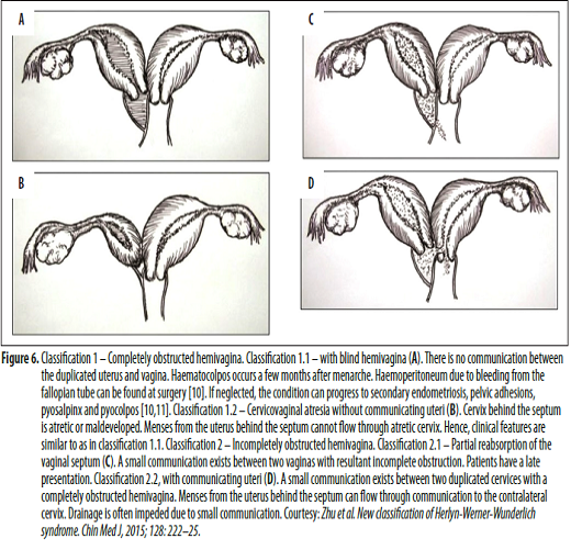 Lan Zhu et al. looked at patients with HWW syndrome at Peking Medical College Hospital (PUMCH), and suggested a new classification for HWW syndrome, based on the presence or absence of complete or incomplete vaginal obstruction. This syndrome is classified by classification 1 (complete obstruction hemivagina) and classification 2 (incomplete hemivaginal obstruction). In classification 2 in which hemivaginal obstruction is incomplete, the menstrual process can run normally from the side that is not obstructed, so it does not always cause problems or complaints and cause delays in diagnosis Figure 1.5,6