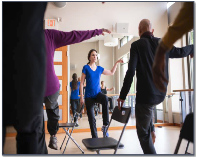 Older adults should engage in regular exercise including aerobic conditioning (minimum of 30 minutes 5-7 days per week), strength training (8-10 muscle groups, 2x/week, 70% rep max, 8-12 repetitions) and multicomponent balance activities.13 To improve balance and prevent falls, adults should practice 3-hours of mid-to high- level balance challenge exercise per week.14 Data suggest TC is most beneficial as a way to reduce fall risk when practiced for at least 50 hours cumulatively.15 This translates to taking a one-hour TC class twice a week for six months or three times a week for four months. As ongoing exercise is necessary to maintain falls protection, it is best to practice TC on a daily basis.14,15 It is optimal to have some formal TC training to learn the fundamentals of safe biomechanical posture and alignment, proper diaphragmatic breathing skills (relevant to all meditative movement therapies)16 and the basic move progressions of TC.3,4,12 Fortunately, TC movements can be taught in an incremental, simple-to-complex neuromuscular progressions, allowing even the most physically and mentally challenged to benefit from this mind-body exercise.4
