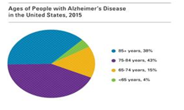 Studies have indicated that Alzheimer’s disease affects approximately 15% of older Americans, between ages 65 and 74, (Figure 2).3 Also demonstrated in figure 2, 38% of Americans, age 85 and older are affected by Alzheimer’s disease. It is further established, (Figure 3) that there will be a steady annual increase in incidence and prevalence of AD, as older Americans continue to live longer than 65 years.2-5 The prevalence in seniors, ages 65 and older were a staggering 5.1 million in 2015. A study using the data from the U.S. Census and the Chicago Health and Aging Project revealed a higher prevalence in women.6,7 Approximately two-thirds of individuals with Alzheimer’s disease are women; 3.2 million of the 5.1 million individuals living with this disease are women and 1.9 million are men.4