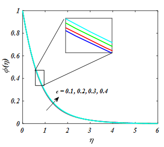 . From Figure 12 and Figure 13 show that both θ(η) and ϕ(η) increases due to rise in