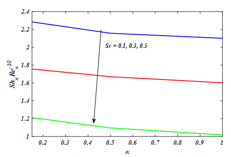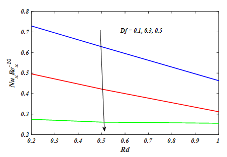 depreciates for larger value of Rd and Df. The impact of k and Sr on