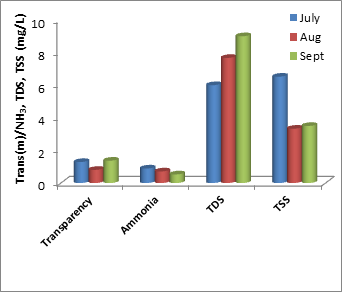 Figure 3 Temporal variations in mean Transparency, Ammonia, Total dissolved and suspended solids in the Oguta Lake.