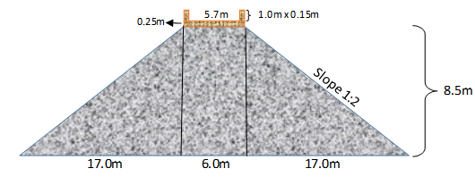 Cross-sectional Area of Dam = 0.5 x (6.0 + 40.0) x 8.5