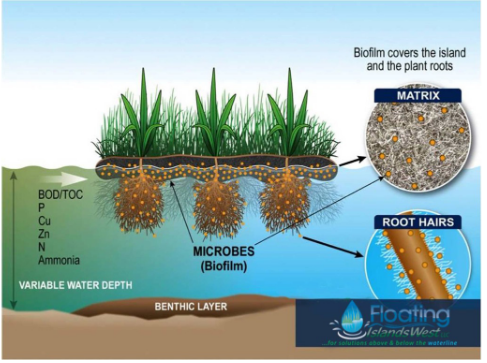 The uptake and sequestration of nutrients by macrophytes and microorganisms are the primary task of FTWs in most contexts. A FTW also acts as a physical filter through the interactions of plant roots with the water, gathering sediment and suspended solids.12