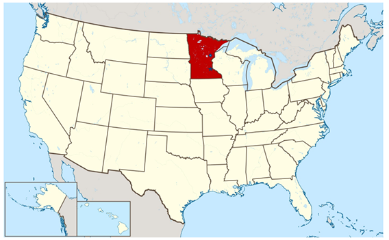 Figure 2 Shows Minnesota located in North America where site one, the Star near the Twin Cities and site two, the diamond located in Northcentral Minnesota.