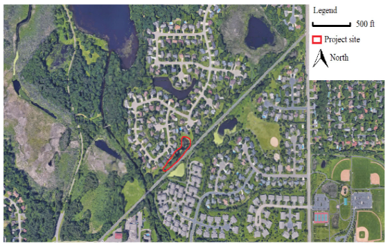 Figure 3 Location of Vadnais Pond and surrounding land use, (from Ortega, 2018).4