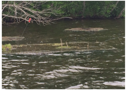 A key objective of 2020 data collection was to identify potential causes of the deterioration of the FTWs placed in Fleming Lake by synthesizing qualitative observation with prior studies of the same site4 and other studies of FTWs in the literature. Prior research has noted that colonization by aquatic organisms can affect the buoyancy of microplastics. This phenomenon, typically referred to as ‘biofouling’, can also sink larger plastic objects when colonization by macro-organisms occurs and develops a thick mat.30 The FTW goal was to cultivate periphyton and aquatic macrophytes for the purposes of removing nutrient pollution. Nevertheless, they may be susceptible to biofouling induced buoyancy loss. If the anchors holding an island in place are tangled by a strong lake fetch blowing an island to the point where it becomes waterlogged, the FTW may not be able to support plants (Figures 10, and 11). In experimental investigations of the impact of biofouling on buoyancy, it was found that the size and shape of matrix material was an important factor in the surface longevity of matrix material.31 Midwest Floating Island has addressed this issue and issues related to biodegradation from sunlight.