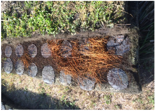 Six of the eighteen islands installed in Fleming Lake had sustained serious damage over the winter of 2019-2020 and had to be removed. On each of these islands, the vegetation was largely dead (Figure 10), several had visible structural damage (Figure 11), and loss of buoyancy. This loss of buoyancy caused the FTWs to sit slightly below the surface, posing a hazard to watercraft (Figure 10). This necessitated the removal of 6 of the 18 FTWs, which were removed on June 4th and 5th, 2020. The islands were towed to a public water access, pulled out of the lake, then sawed into smaller pieces for transport. We qualitatively examined the factors that contributed to the eventual removal of the FTWs from Fleming Lake, drawing from novel observations and existing literature to put forth potential explanations. We noted that geese attacked and ate the plants placed on the islands. In the first spring and summer in 2017 which the FTWs were installed on Fleming Lake, seven islands showed signs of having been attacked by geese, including damaged fencing, damaged plants, and goose fecal matter.4 Various control measures have since been put in place to prevent further damage, of which the most successful was a metal fencing over the surface of the FTW. Similar damage was present on the islands in 2020, indicating that predation of the planted vegetation by geese was an ongoing damage issue to the islands.
