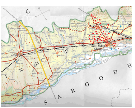 The salt range is a strip of hill system in Punjab Province deriving its name from extensive deposits of rock salt. The range extends from Jhelum River to Indus across the northern portion of Punjab Province. The most populated areas in the salt concentrated strip are Khewra, Pind Dadan Khan and Choa Saiden Shah (Figure 1). Khewra is a crowded town located close to Khewra Salt Mines and Pind Dadan Khan is an administrative subdivision of Jhelum District with a settlement of over 0.7 million people. The area considered as the primary target was Khewra and Pind Dadan Khan because of the maximum concentration of salt in drinking water owing to salt mining activities in Khewra and rainwater runoff from mines towards Pind Dadan Khan.