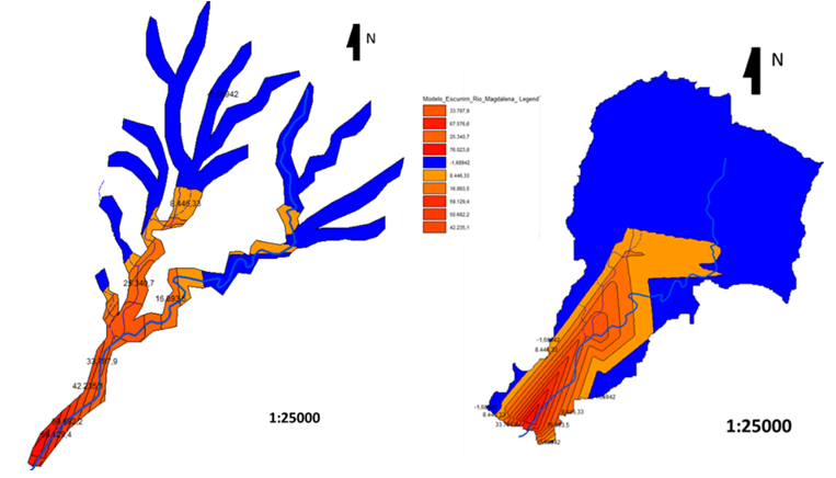 The results obtained in the first instance show that it is feasible to apply this procedure to know in a preliminary way what maximum flow is available at any point of a main river or tributary of the selected hydrographic basin (Magdalena), spatially with the use of a GIS. This approximation constitutes a significant advance for subsequent work in other watersheds of Santiago de Cuba and the country, allowing to know at any point of the river or stream an estimated value by indirect hydrological methods of the amount of water and the maximum flow that will run during the heavy rain season.