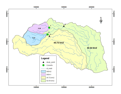 Field visits were carried out in order to study the physio-geographic characteristics of the catchment. GIS was used for preparing maps to determine the proper locations for storing floods based on criteria containing slope, infiltration capacities of the sediments, wadi’ runoff, land use, depth of ground water and wells density in the study area.
