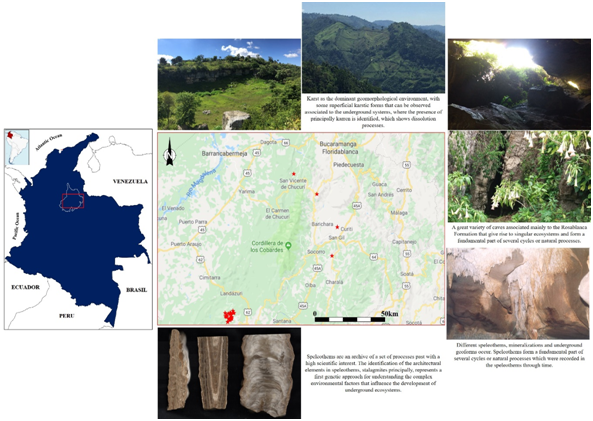 Numerous underground systems in Santander municipalities, such as Zapatoca, Los Santos, Rionegro and El Peñón, can be considered as representative speleosites due to their exceptional values, standing out for their spatial development, richness and diversity of speleothems, underground streams and lakes and paleontological or archaeological remains. It is hoped to obtain strategic alliances with different entities that allow to expand these works to new municipalities and cavities of the department, taking into account the great Karstic potential that the entire department has. Karst sciences and geospeleology have enormous potential and must be known to scientists because of their great importance and ability to understand phenomena such as climate change and contribute to the sustainable development of regions.