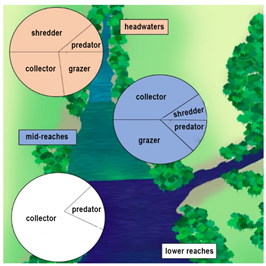Figure 1 Stream communities are adapted to conform to changes in habitat characteristics as proposed by the River Continuum Concept.13