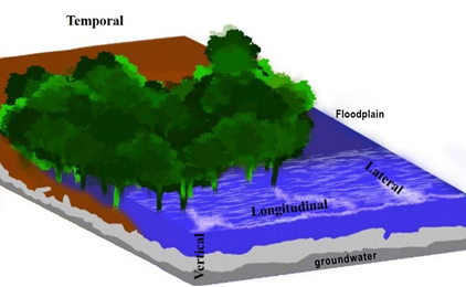 The four-dimensional concept (Figure 5) incorporates ideas from other stream ecology concepts, particularly the river continuum, flood pulse, and process domain concepts.40