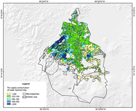 Figure 3 Spatial variation of per capita water consumption in Mexico City.