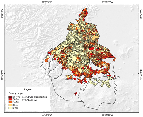 Figure 6 Spatial distribution of poverty in Mexico City.