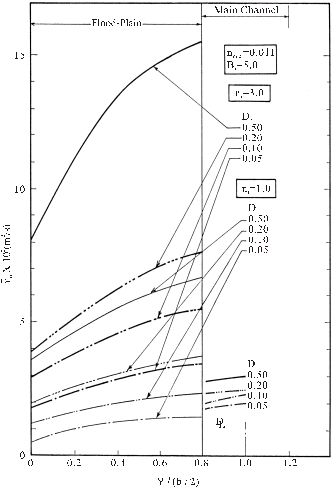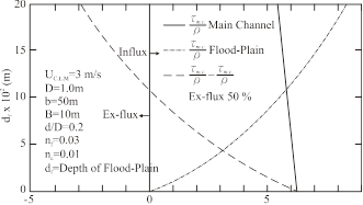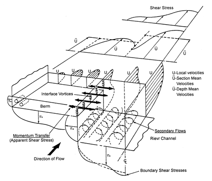 Because of the different roughness between main-channel and floodplain Figure 8, Luo18 the shear stress alters the momentum transfer inducing the apparent shear stress at the intersection of main-channel and floodplain with larger influence on energy and momentum exchanges, especially when the water depth just bankful with the small depth ratio Figure 9. Luo18 and the discharge will be overestimate when you treat the flow situation as a single cross-section. The complicated flow results in a complex phenomenon on material transportation and formation of river patterns.