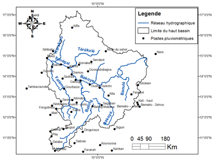 Rainfall data: these are chronicles of annual rainfall amounts from four (04) stations located in the upper catchment area (Table 1). These chronicles cover the period from 1955 to 2014 and are obtained from the organization for the development of the Senegal River (OMVS).