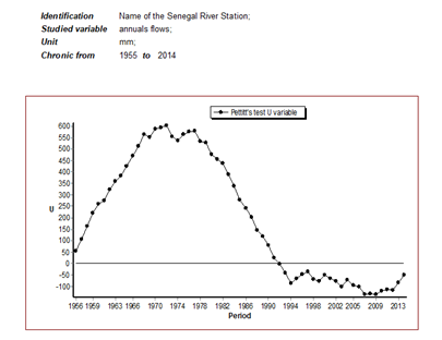 Over the period 1955-2014, interannual variations in flows are quite significant in the upper Senegal River basin at the Bakel outlet. The average of the series is 282.6 m3/s with a standard deviation of 134m3/s. Overall, there are two high-flow phases interspersed with a long low-flow phase (Figure 6).
