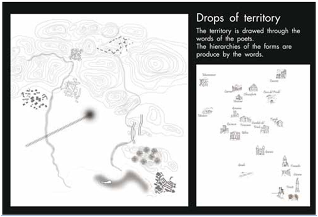 The research was conducted in 4 phases, through survey and project tools, words and media for geographic elaboration, looking for the subtle connection between word and content, mapping and structure, territory and environment, landscape and place, shape and image Figure 6. Eleven working groups were created to work each on one of the identified themes. The work of each group was put together with that of the others to shape the new landscape’s mosaic. Eleven visions were developed, each imagining a new geography of the border. Together, they acrobatically re‒designed a new morphology of the limes, palimpsest of a multiethnic community where the remains of the history of places can write a new story between geography, landscape and architecture. These eleven visions in turn become the project making material for the overall re‒shaping of landscape. The concept of “border as landscape”6 becomes then a key to identify the geographies of this cross border region. The geographer Giorgio Valussi, between the end of 1950s and mid 1960s, conducted a series of studies on Carsic landscapes, both in Italy and Slovenia, leading him to formulate the theory of the “geography of the border”, finding its roots in the continuous changes within landscapes Figure 7&8.7