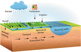 Eutrophication is one of the harmful phenomena which affects continental water (rivers, lakes, springs, etc.) due to the injection of N and P. If it is easy to manage point source pollution, non-point source pollution still represents a challenge. Management practices such as tillage technics, fertilizer management, and wetlands appear as solutions to remove N and P from runoff water.