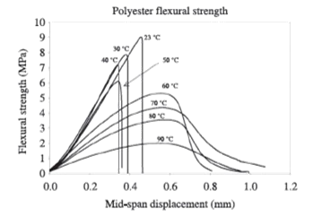 Rise in temperature reduces polymer concrete characteristics. This matter is because that polymer features depend on temperature (Figure 3). Temperature effect on mechanical properties in one kind of polymer concrete is shown in Figure 5.