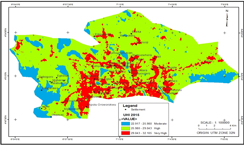 In recent times, the spike in the formation of UHI and its attendant challenges such as air pollution, heatwave, greenhouse effect and increased energy consumption has been a source of concern to researchers.7 The entire Obio/Akpor local government area of Rivers State is vulnerable to the vagaries of UHI considering its cosmopolitan nature. Since incidences of UHI have enormously affected air conditioning loads, worsened air and water quality and exacerbated heatwaves as well as irregular weather patterns which have also affected the economic base of residents as they now spend more on energy, health, and cooling systems.