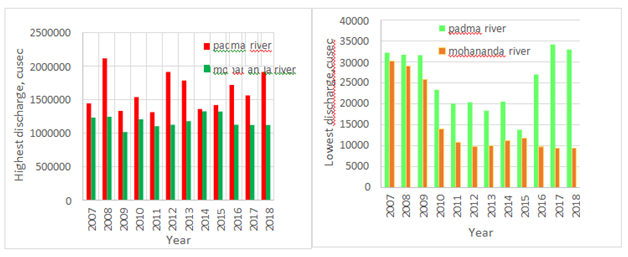 The variation of highest and lowest discharge of Padma River and mohananda river